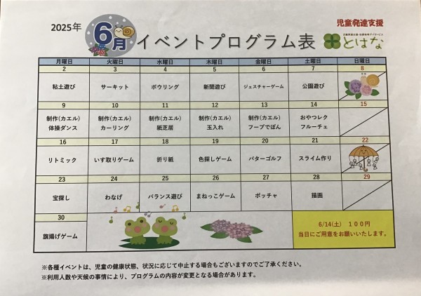 ⭐️6月のイベント・プログラム⭐️児童発達支援
