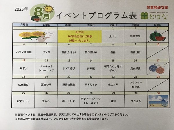 🌟8月のイベント・プログラム🌟児童発達支援