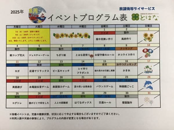 ⭐️8月のイベント・プログラム⭐️放課後等デイサービス