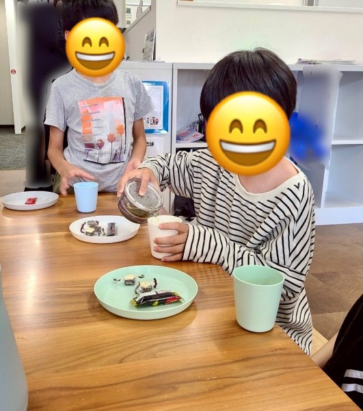 緑茶を初めて飲む子もいて不安な様子で口にしてみたら…