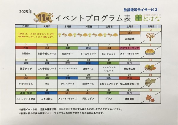 ⭐️11月のイベント・プログラム⭐️放課後等デイサービス