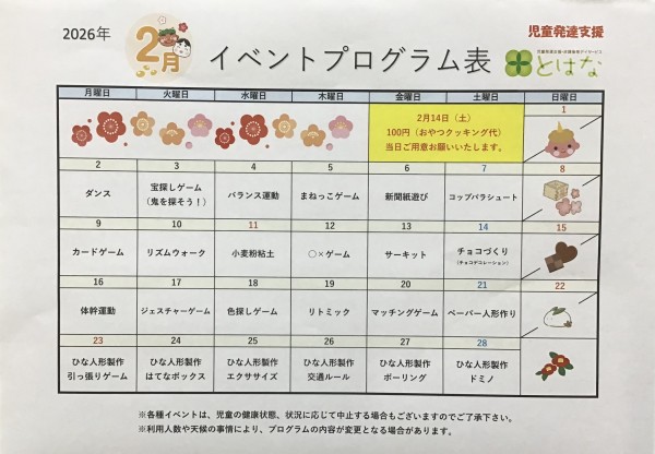 ⭐️2月のイベント・プログラム⭐️児童発達支援