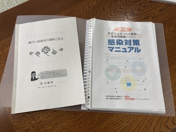 本日はスタッフ全員で各種マニュアルの確認や虐待や感染症に対しての研修を行いました。